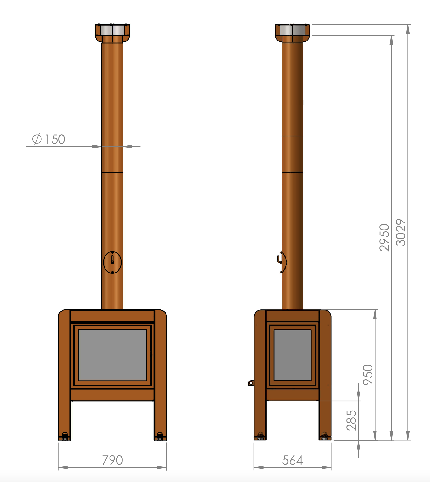 Furthermore, both have a deep firing bottom, made with the well-known refractory concrete. For the flue we used the same CorTen steel pipes that are known from the Quaruba series.