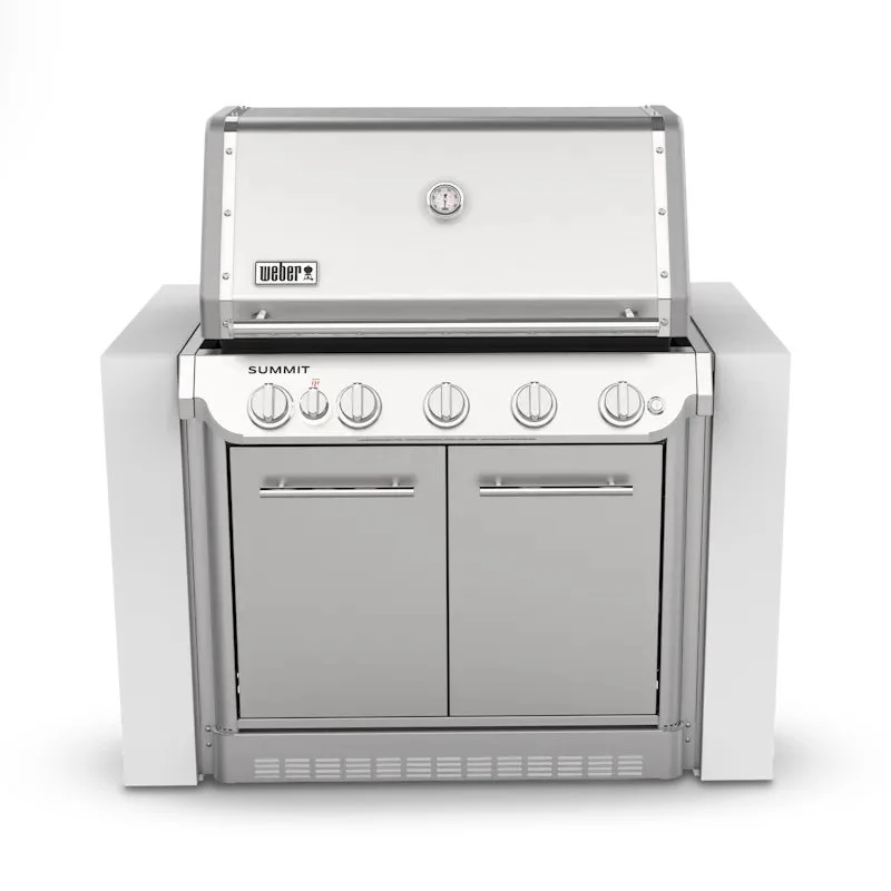 Step up to the Summit Built-In - it's sure to turn heads in your outdoor kitchen or entertaining area. It’s our top-of-the-line gas barbecue, reinvented with features that expand your outdoor cooking techniques and enable you to entertain at a higher level. The top-down, high-heat infrared burner directs blazing heat onto the top of food, producing an edge-to-edge caramelised crust that seals in flavour. Light up the stainless-steel smoker box to give your food a low-and-slow, smoky boost and break out of your routine with the large rotisserie. This 5 burner BBQ is equipped with the WEBER CRAFTED cooking grills and frame kit that lets you transform your BBQ into a griddle, pizza oven, wok, and more with a variety of custom-fit accessories (sold separately). Bring the kitchen outside and create delicious food that makes every gathering memorable.
