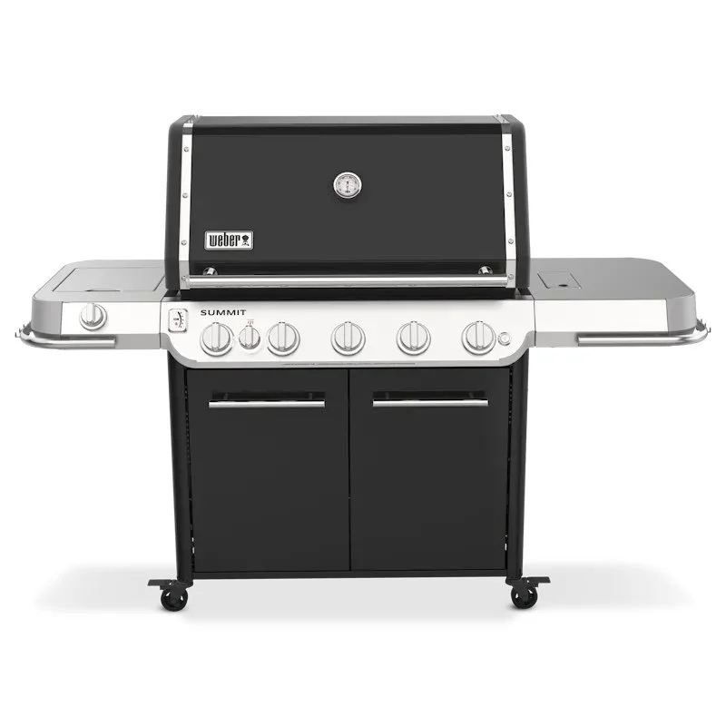 Step up to the Summit® - our top-of-the-line gas barbecue, reinvented with features that expand your outdoor cooking techniques and enable you to entertain at a higher level. The top-down, high-heat infrared burner directs blazing heat onto the top of food, producing an edge-to-edge caramelised crust that seals in flavor. Light up the stainless-steel smoker box to give your food a low-and-slow, smoky boost and break out of your routine with an integrated rotisserie. This 5 burner BBQ is equipped with the WEBER CRAFTED cooking grates and frame kit that lets you transform your grill into a griddle, pizza oven, wok, and more with a variety of custom-fit accessories (sold separate). Bring the kitchen outside and create delicious food that makes every gathering memorable.