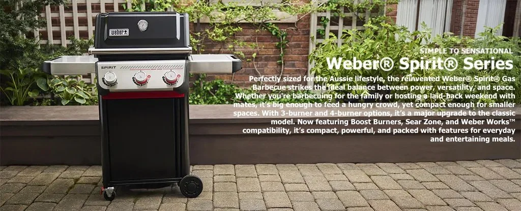 Perfectly sized for the Aussie lifestyle, the reinvented 3-burner Weber® Spirit® E-325 Gas Barbecue strikes the ideal balance between power, versatility, and space. Whether you're barbecuing for the family or hosting a laid-back weekend with mates, it’s big enough to feed a hungry crowd, yet compact enough for smaller spaces—and it’s built to deliver consistently great results. The ultra-hot Sear Zone, powered by two stainless steel Boost Burners unleashes 40% more power, making it easy to create bold, flavourful sear marks on meat, fish, and veggies.