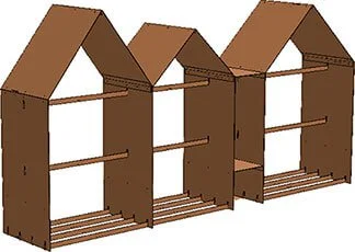 ‘Bruges’ is a wood storage made from CorTen steel. Designed by the Belgian designer Jan Kuppers (Kuppers & Wuytens). The shape is inspired by the typical Belgian façade construction. When designing a simple production and assembly was central to the design. The basic package consists of 11 metal plates, so that they can be transported as a flatpack. The parts are easy to assemble; the roof is put into shape with a few bolts, the houses themselves get the necessary stability by sliding them together with connecting pieces, for which simple slots are provided in the sheet material.